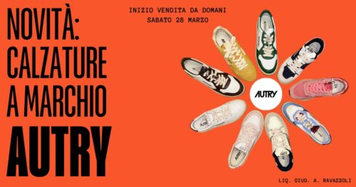 LA VENDITA HA INIZIO DA DOMANI SABATO 28 MARZO Novità nel reparto calzature: calzature donna e uomo a marchio AUTRY. Lotto di circa 500 calzature nei seguenti modelli: • Modalist• Reelwind• Hyperway• Super vintage• CLC low• Med-way PREZZO DI CARTELLINO PREZZO FALLIMENTARE da € 170 a € 195 € 79 da € 200 a € 220 […] Read more