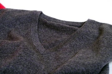 Collo a V con girovita e polsi in maglia a costa inglese