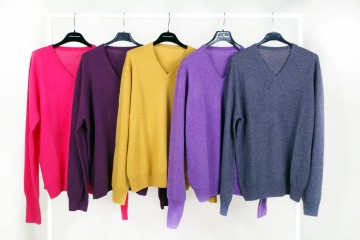 Ultimo lotto di 500 capi di maglieria in cashmere proposti dalla tg 48 alla tg 58 Tre modelli dal taglio maschile adatti anche ad un outfit femminile in un’ampia varietà di colori : azzurro, carta da zucchero, blu, viola, corallo, ocra, cammello, marrone, verde foresta, grigio chiaro e grigio scuro