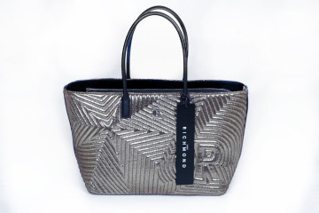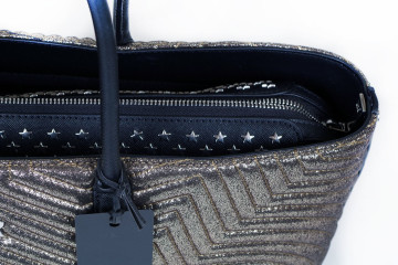 Large shopping bag (ultimo pezzo) collezione Star color gun metal 34,5x27x18 in poliestere e poliuretano con chiusura a cerniera, varie taschine interne e patella spruzzata di stelline in metallo