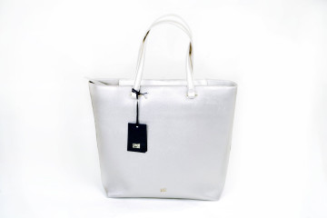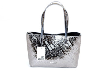Big shopping bag (ultimo pezzo) in pvc brilliant metal 41x32x15 con lunghi manici, tracolla a ganci e chiusura con automatico Pochette interna multiuso