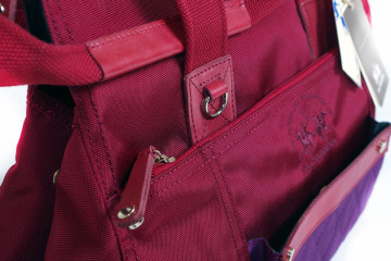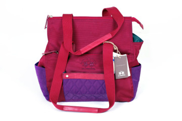 Shopping bag (due pezzi) in tessuto tecnico dark red e purple 36x27x16 con doppio manico, triplo vano a soffietto, chiusure con automatici o cerniere e varie tasche interne