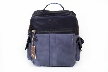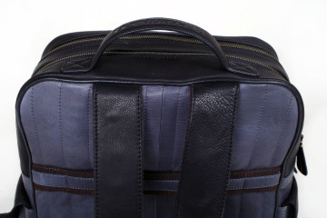 Backpack (ultimo pezzo) in cuoio nappato nero e antracite 33x38x14 con spallacci rinforzati, doppio vano con chiusura a cerniera e molteplici tasche e scomparti interni per pc e tablet