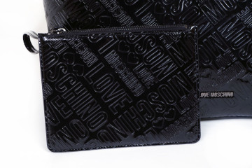 Big shopping bag (due pezzi) in pvc brilliant black 41x32x15 con lunghi manici, tracolla a ganci e chiusura con automatico Pochette interna multiuso