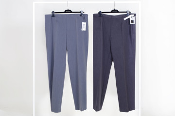 Pantaloni in taglie calibrate dalla 47 alla 59 in misto lana, viscosa, poliviscosa ed elastane   Colori classici da abbinare facilmente a qualsiasi tipo di outfit (grigio polvere, fumo di Londra, marrone, blu notte, nero Modello classico a gamba dritta o taglio fasciante a sigaretta (capi a numero ridotto fino ad esaurimento scorte)