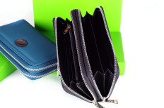 Portafoglio long size con due zip : estremamente capiente, con doppi vani differenziati per banconote moneta carte e documenti Proposto in quattro colori : navy blue black brown petrol green