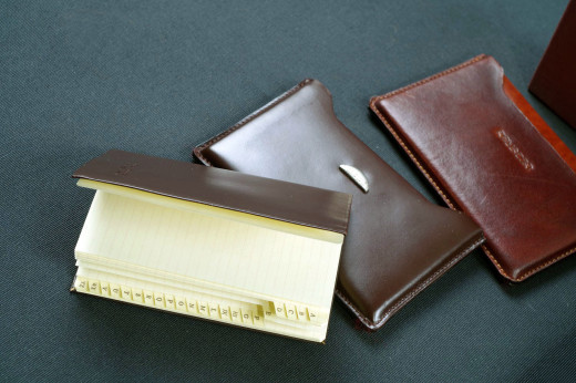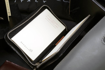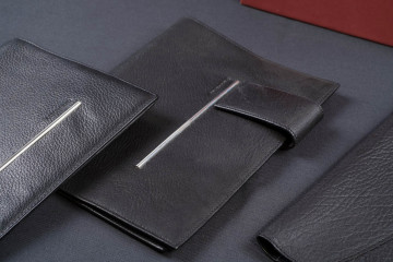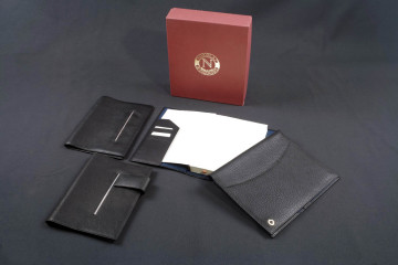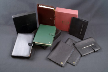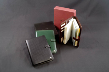 Funzionalità d’uso, design elegante ed alta qualità li troviamo nei porta agenda in pelle liscia nei colori bordeaux e verde e in pelle “battuta a grana” in tinta nera (dimensioni cm. 24 x cm.17, cm. 23 x cm. 16) Logo PiQuadro inciso su placchette metalliche o stampato nel cuoio e chiusura a patella con automatico Scomparti interni per biglietti da visita e modelli ad anelli con la possibilità di rinnovare l’organizer tutti gli anni