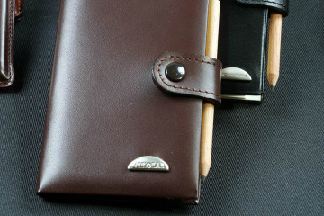 Agendina da tasca o da borsetta in morbidissima pelle nera o bordeaux con chiusura a cerniera e piccola rubrica telefonica all’interno o chiusura ad automatico e utile matitina in legno