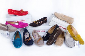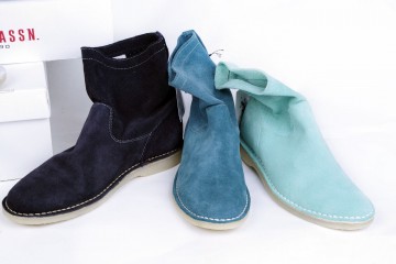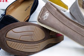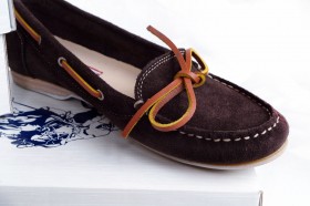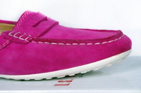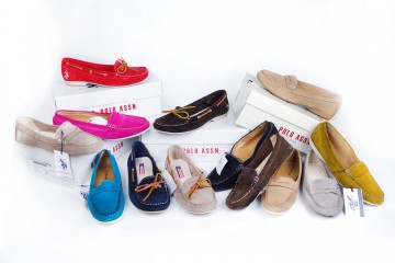 Mocassino in pelle scamosciata con cordino di cuoio o finta fibbia in pelle o metallo Suola in gomma antiscivolo tono su tono o a contrasto. Vari colori e misure