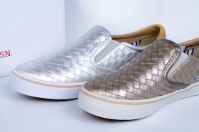 Slip on di estrema comodità ed eleganza nelle finiture in eco pelle dorata o tessuto lamè oro e azzurro. Vari modelli e misure