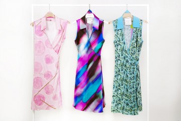 Abiti al ginocchio con maniche corte o spalline a canotta, collo americano e chiusura a portafoglio, taglio vita a stile impero o a nido d’ape Una rivisitazione dello stile anni ’60 e ’70 dalla linea avvolgente e sensuale