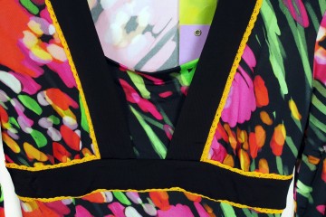Pura seta, colori brillanti, fantasie anni ’70 e femminilità sono le caratteristiche che si fondono in questi capi estremamente allegri e adatti anche ad occasioni speciali Vestibilità morbide, sovrapposizioni di filati, giochi di colore e di diversi tessuti rendono ogni singolo capo unico e facilmente abbinabile a qualsiasi tinta unita