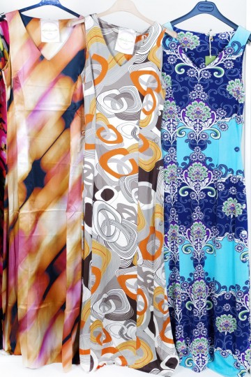 Abiti lunghi dal taglio sinuoso con allacciatura laterale a bottoni coperti e fantasie a mille colori (taglie limitate)