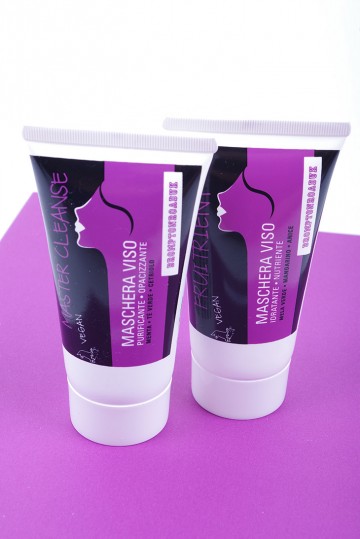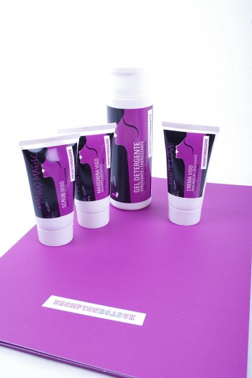Linea viso: detergente scrub due in uno, detergente struccante energizzante, detergente struccante delicato, scrub multivitamine, maschera purificante, maschera nutriente, crema idratante-nutriente, crema opacizzante