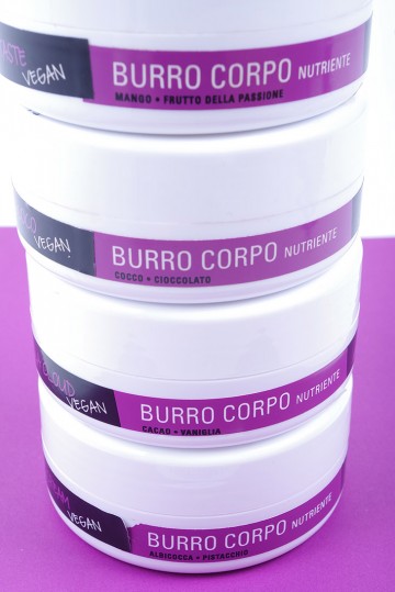 latte corpo idratante-energizzante-multivitaminico (da abbinare alle fragranze del doccia schiuma), burro corpo idratante e nutriente (mango-frutto della passione-cacao-vaniglia-cocco-albicocca-pistacchio)