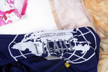 L’azienda Colner Italia srl  produceva per il marchio Alviero Martini 1° Classe, oltre che abbigliamento, anche costumi da bagno per lui: slip, slip alto e parigamba