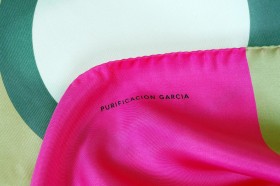 Purificacion Garcia : maxi foulards in pura seta dai colori brillanti e fantasie a toni a contrasto