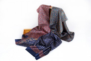 Bettini : sciarpe in pura seta per Lui in eleganti fantasie cashmere e microfantasie geometriche