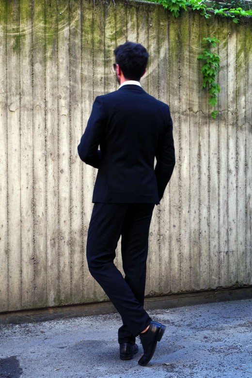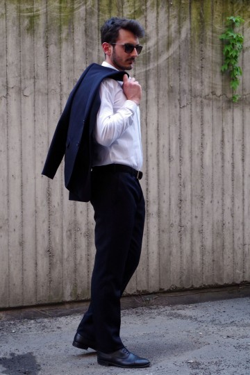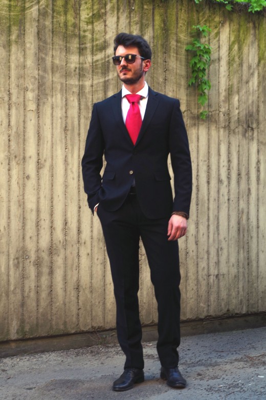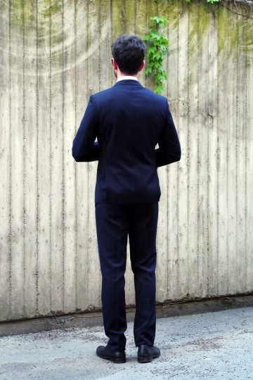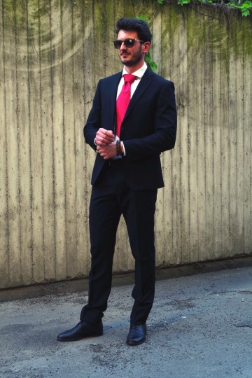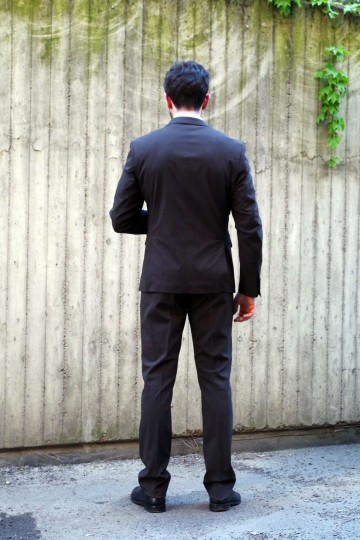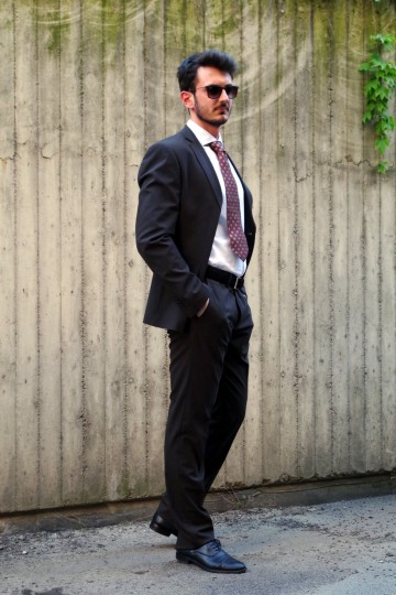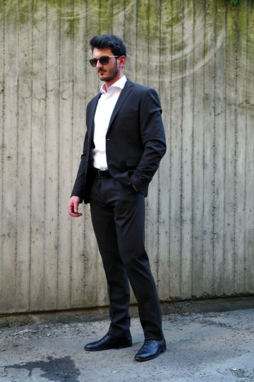 Abito 100% fresco di lana in tinta unita nero, drop 7 dalla tg 46 alla tg adatto anche alle temperature più elevate Modello a due bottoni con pantaloni taglio slim da indossare senza risvolto
