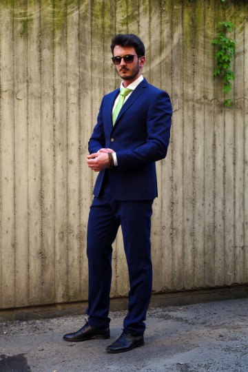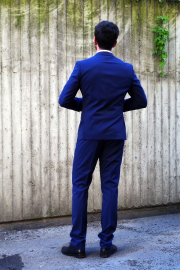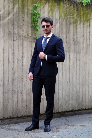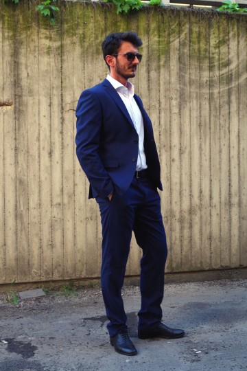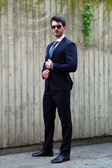 Abito 45% lana 55% poliviscosa in tinta unita blu scuro , drop 7, dalla tg 46 alla tg 58 Tessuto misto anti-piega dal taglio moderno ed allacciatura a due bottoni