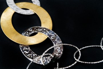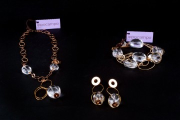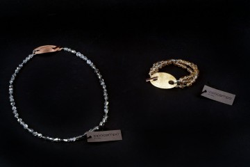 Gioielli d’altissima bigiotteria creati da artigiani italiani e realizzati in metalli nobili impreziositi da pietre, quarzi naturali, cristalli Argento e bronzo uniti ad elementi galvanizzati con polvere d’oro giallo, oro rosa e oro bianco, conferiscono ad ogni singolo gioiello unicità e splendore Le pietre naturali (agata, ametista, quarzo, cristallo di rocca, acquamarina, diaspro, quarzo topazio), sono state attentamente selezionate e scelte singolarmente per impreziosire e colorare ogni collana, bracciale o orecchino