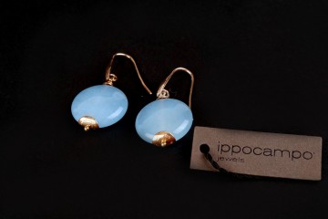 Sorbetto orecchini in argento con elementi galvanizzati in oro rosa con giada celeste fiordaliso € 59 in vendita a € 18