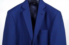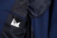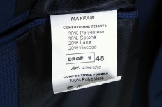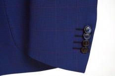 Giacca 30% cotone 30% poliammide 20 % lana 20% viscosa in fantasia microquadro scozzese blu Mezza fodera e allacciatura a due bottoni con tasche applicate Dalla tg 48 alla tg 56