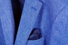 Giacca 51% cotone 49% lino color azzurro carta da zucchero melange Mezza fodera e allacciatura a due bottoni con tasche applicate Dalla tg 48 alla tg 56 drop 6