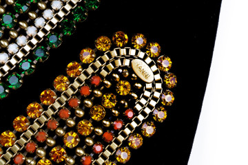 Ferma foulard in metallo e strass con anello a gancio sul retro