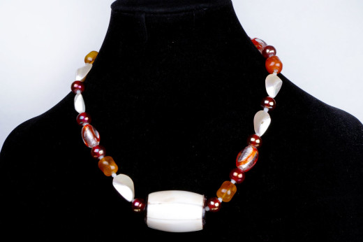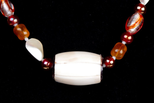Collana in vetro di Murano madreperla corno e resina abbinabile al bracciale rigido in corno color avorio