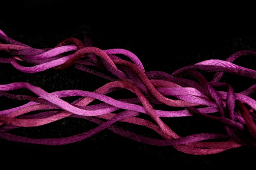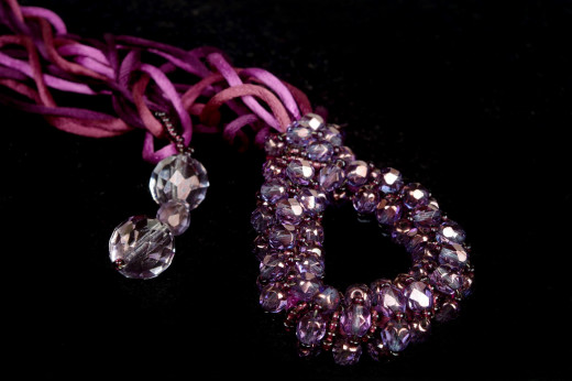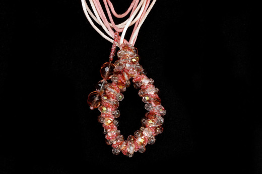 Collana in nastri di seta e perle di vetro lavorate a mano con inusuale chiusura ad anello