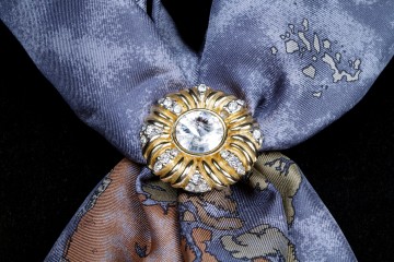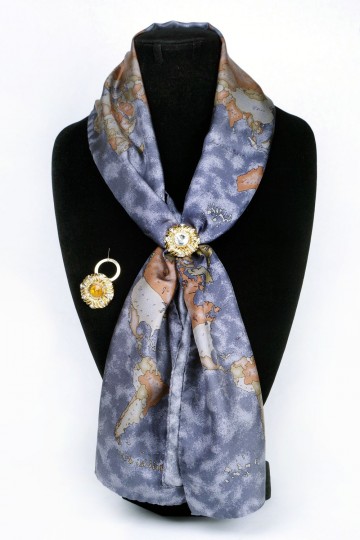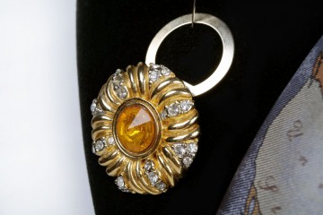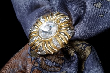 Ferma foulard in metallo e strass con anello a gancio sul retro