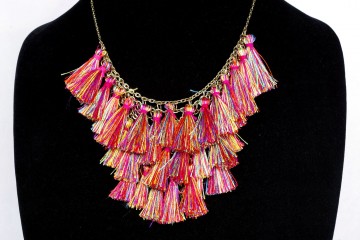 Collana in metallo e fili di seta multicolor da abbinare facilmente a qualsiasi outfit in tinta unita