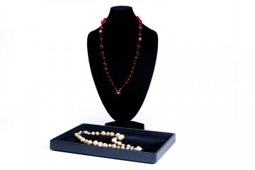 Collier in perle di vetro lavorate a mano o in perle di fiume a doppio giro ma con la possibilità di trasformarle in collana lunga Proposte in rosso rubino e grigio perla naturale