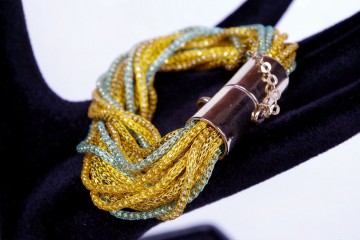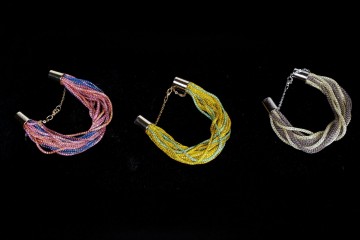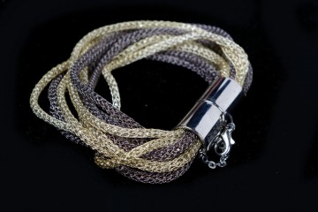 Bracciale multifilo in maglia di metallo colorata con comoda chiusura a calamita e catenella di sicurezza Proposto in tre colori fantasia