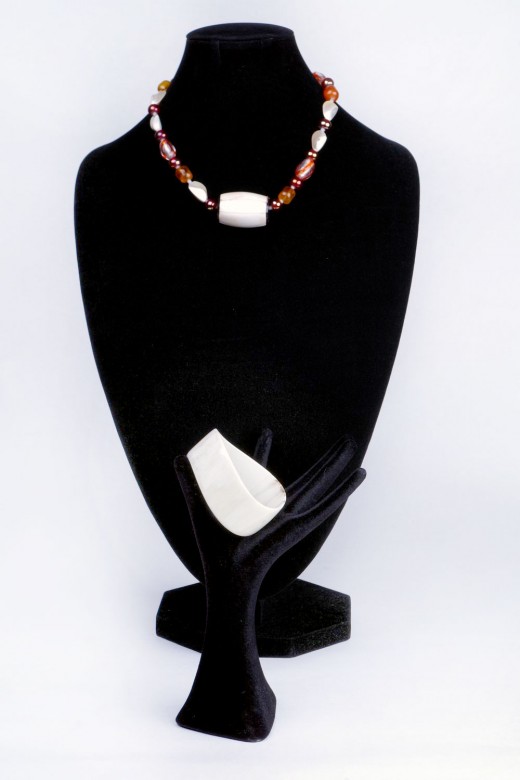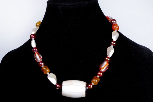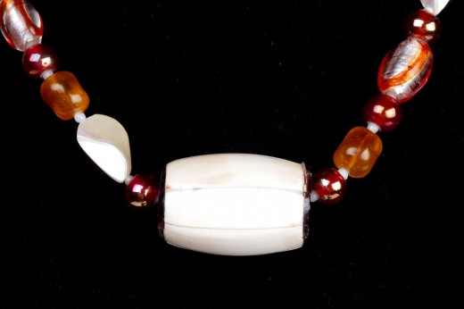 Collana in vetro di Murano madreperla corno e resina abbinabile al bracciale rigido in corno color avorio