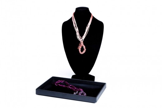 Collane, girocollo, bracciali, orecchini, spille ed anelli realizzati con pietre naturali, cristalli, resine, legno, strass, seta, lana e perline in vetro di Murano