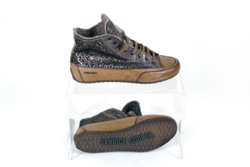 Sneakers in pelle, pelle stampa pitone, pizzo con interno in bouclé di lana e imbottite a rombi