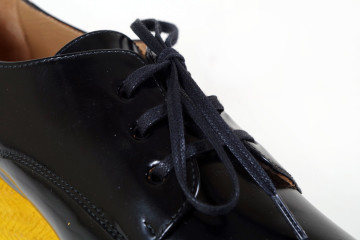 Linea comoda a plateau intero in colore a contrasto e morbida pelle nera Modello mocassino e modello stringato