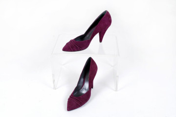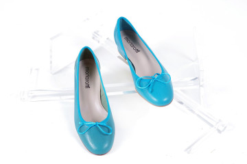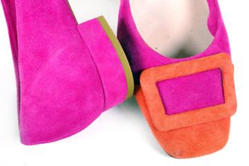Décolleté basse in pelle scamosciata con suola in cuoio e tacchetto in cuoio o rivestite in pelle tono su tono Finiture e decori bicolore a fiocco, a pastiglia o a fiore