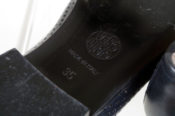Décolleté alto con suola in cuoio e tacco (8, 10 o 12) rivestito in pelle tono su tono Modello tondo o a punta arrotondata con decoro bicolore, a drappo o a fiocco