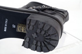 Stivaletti in pelle lucida nero e testa di moro con suola in gomma “carro armato” antisdrucciolo e fibbia regolabile o comodo inserto elastico