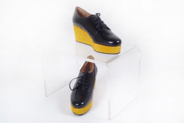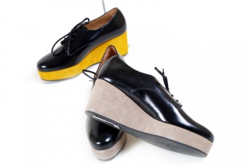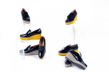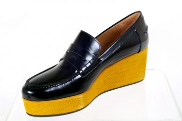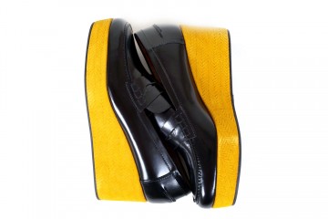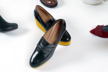 Linea comoda a plateau intero in colore a contrasto e morbida pelle nera Modello mocassino e modello stringato