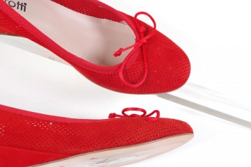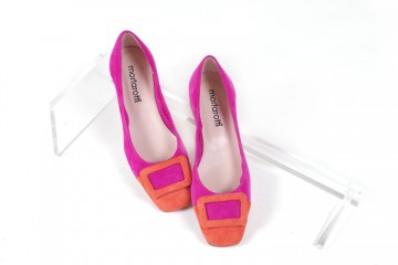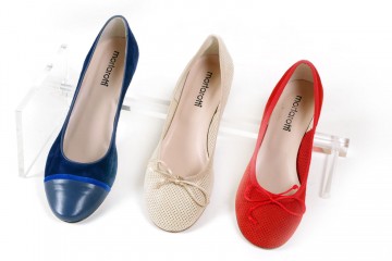Décolleté basse in pelle scamosciata con suola in cuoio e tacchetto in cuoio o rivestite in pelle tono su tono Finiture e decori bicolore a fiocco, a pastiglia o a fiore