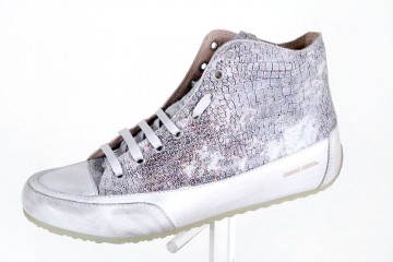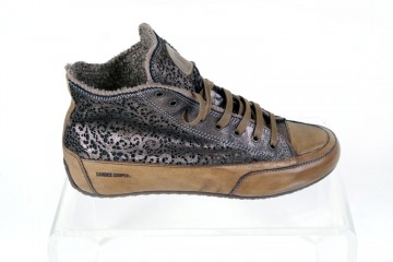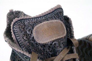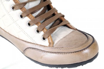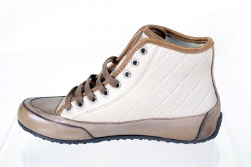 Sneakers in pelle, pelle stampa pitone, pizzo con interno in bouclé di lana e imbottite a rombi