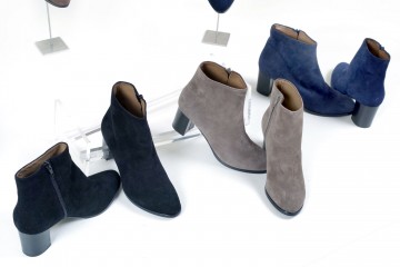 Tronchetti in pelle lucida o pelle scamosciata con tacco 6 squadrato o tacco 8 e leggero plateau
