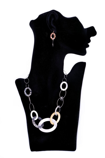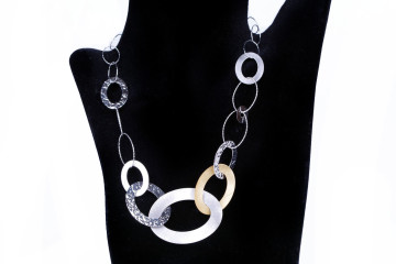 Gioielli d’altissima bigiotteria creati da artigiani italiani e realizzati in metalli nobili impreziositi da pietre, quarzi naturali, cristalli Argento e bronzo uniti ad elementi galvanizzati con polvere d’oro giallo, oro rosa e oro bianco, conferiscono ad ogni singolo gioiello unicità e splendore Le pietre naturali (agata, ametista, quarzo, cristallo di rocca, acquamarina, diaspro, quarzo topazio), sono state attentamente selezionate e scelte singolarmente per impreziosire e colorare ogni collana, bracciale o orecchino