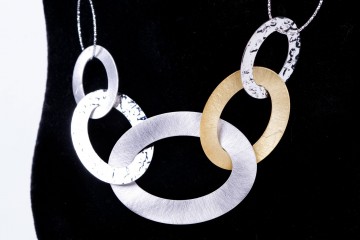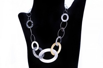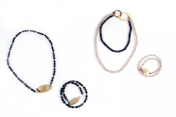 Gioielli d’altissima bigiotteria creati da artigiani italiani e realizzati in metalli nobili impreziositi da pietre, quarzi naturali, cristalli Argento e bronzo uniti ad elementi galvanizzati con polvere d’oro giallo, oro rosa e oro bianco, conferiscono ad ogni singolo gioiello unicità e splendore Le pietre naturali (agata, ametista, quarzo, cristallo di rocca, acquamarina, diaspro, quarzo topazio), sono state attentamente selezionate e scelte singolarmente per impreziosire e colorare ogni collana, bracciale o orecchino