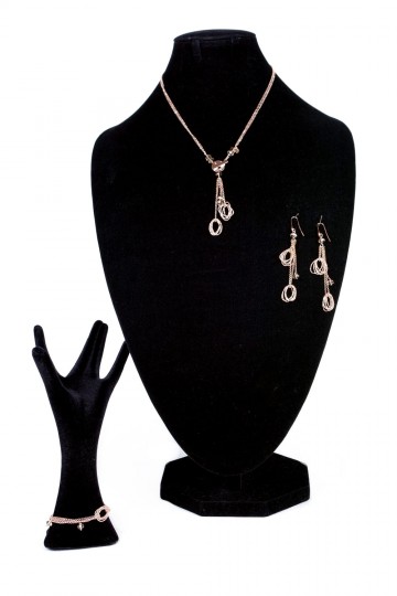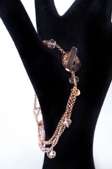 Parure Ippocampo in fine maglia galvanizzata oro rosa e punti luce in cristalli naturali