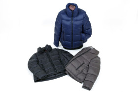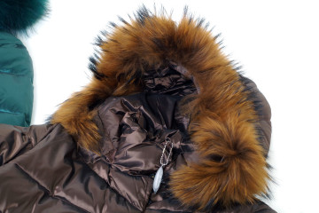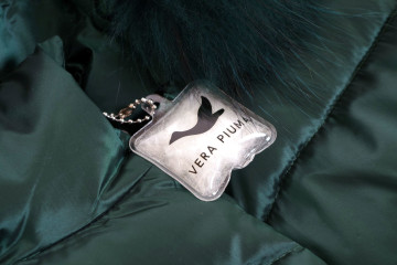 Cappotto imbottito in vera piuma con cappuccio rifinito in perlo murmasky nei colori verde ottano, marrone e nero dalla tg S alla tg 3XL (alcune taglie a numero ridotto)